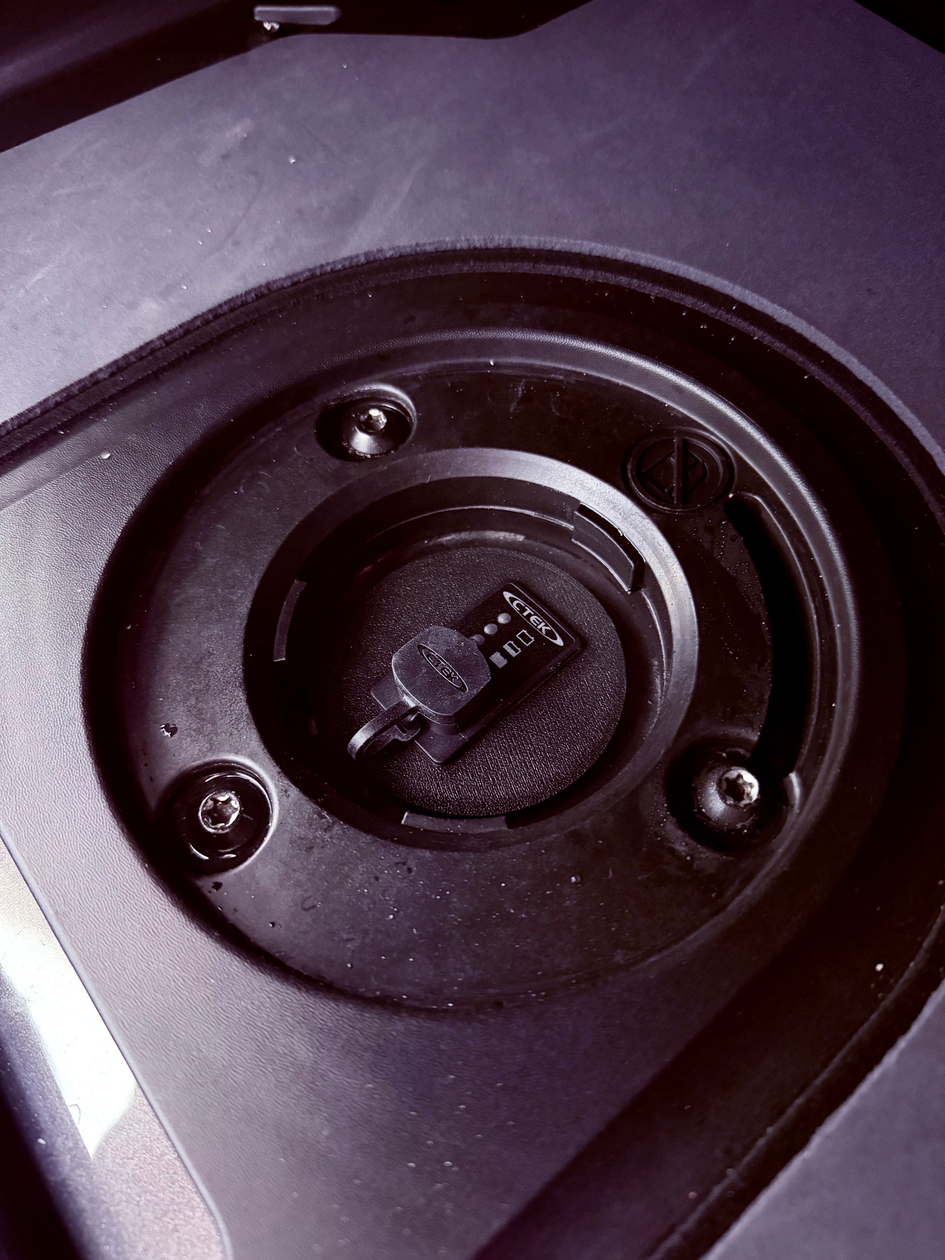 Im Adapter ist ein CTEK-Anschluss integriert – inklusive originalem CTEK-Adapter (kein Nachbau). Zusätzlich ist eine 3-stufige LED-Anzeige verbaut, die den Batteriezustand jederzeit sichtbar macht: